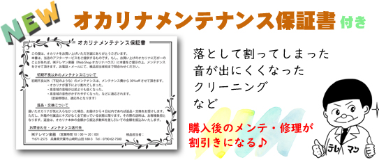 当店でお買い上げいただきましたオカリナは責任持ってアフターさせていただきます。