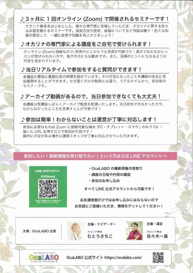 オカリナのためのオンラインセミナー OcaLABO