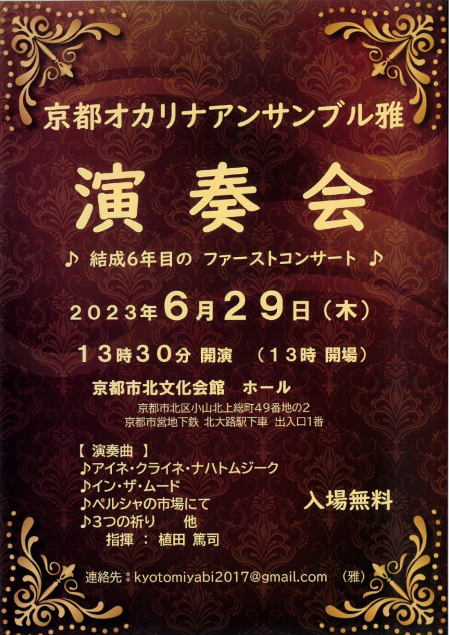 京都オカリナアンサンブル雅 演奏会 ♪結成6年目のファーストコンサート♪