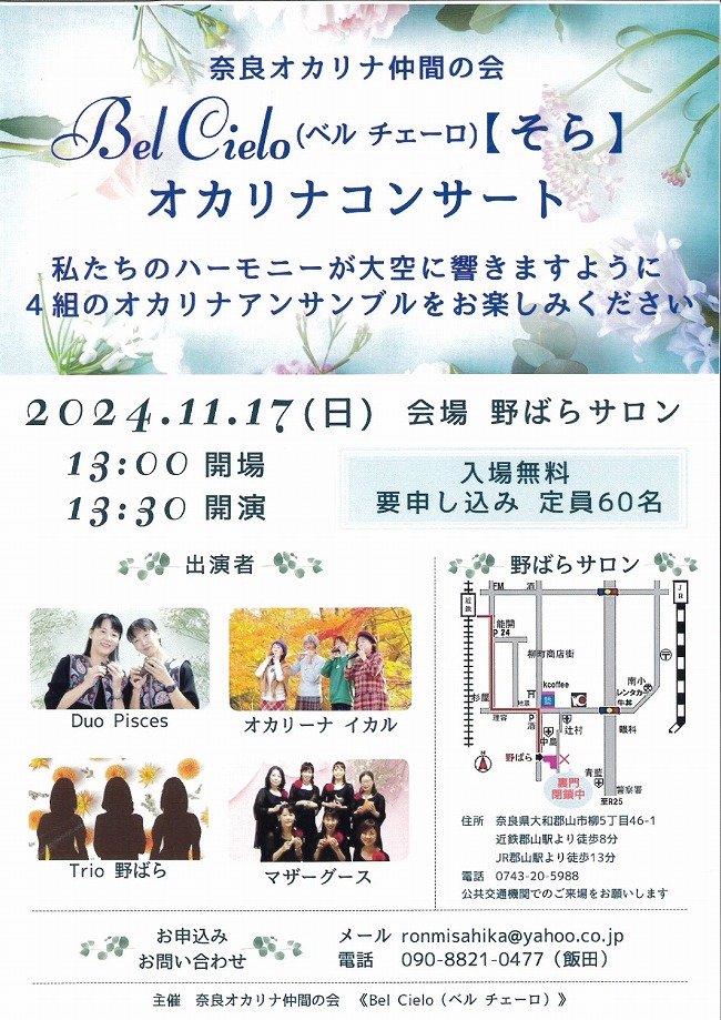 奈良オカリナ仲間の会 Bel Cielo(ベル チェーロ)【そら】 オカリナコンサート