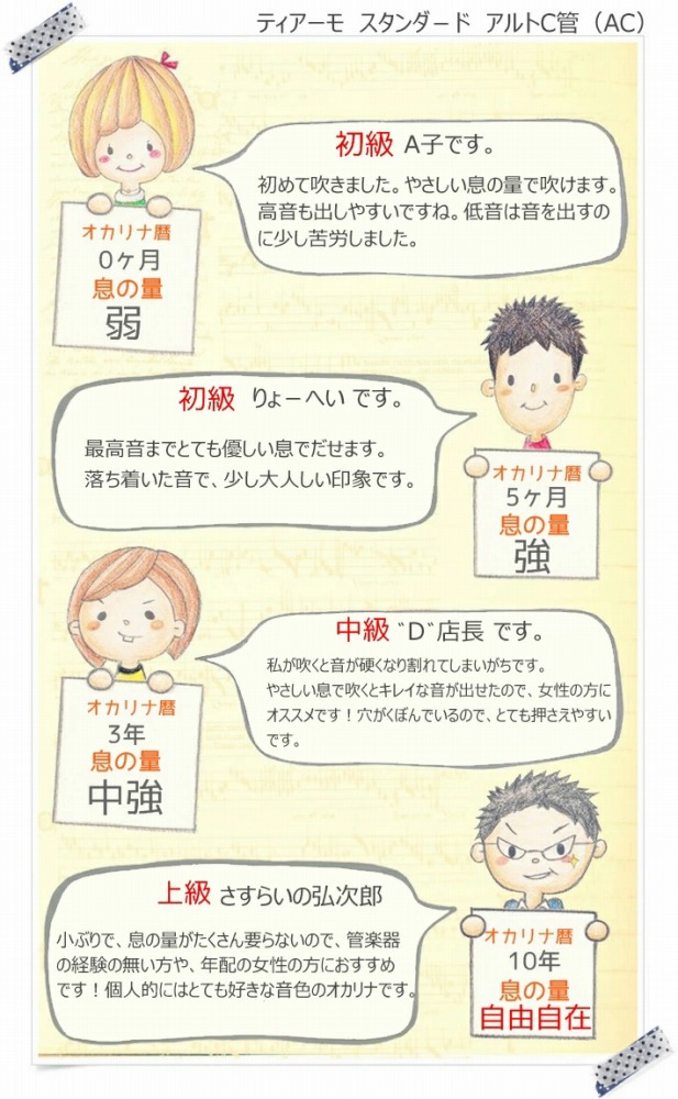 入門用としてももちろん、曲によって音色を変えたりするときにも非常に効果的なオカリナです。