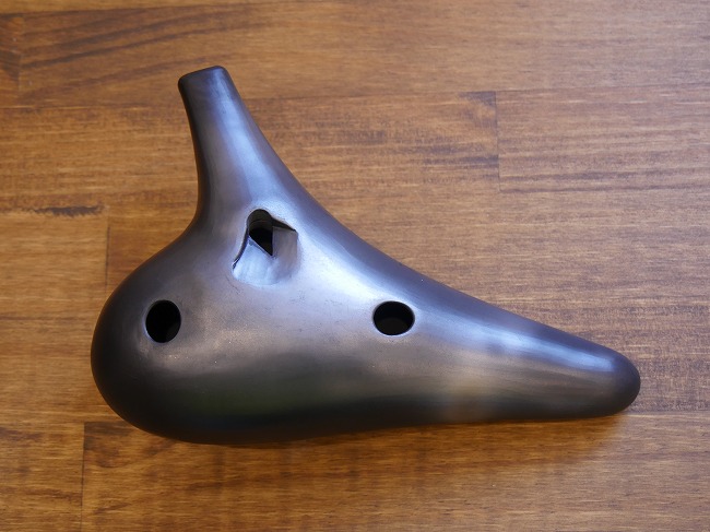 ●ヒロミチオカリナの説明 赤土を焼き上げたオカリナは、更にひと手間加えられ、大鋸屑(オガクズ)で燻し焼きしております。じっくり燻されたオカリナの外観は黒く、黒色の中にうっすら焼き目が残っております。