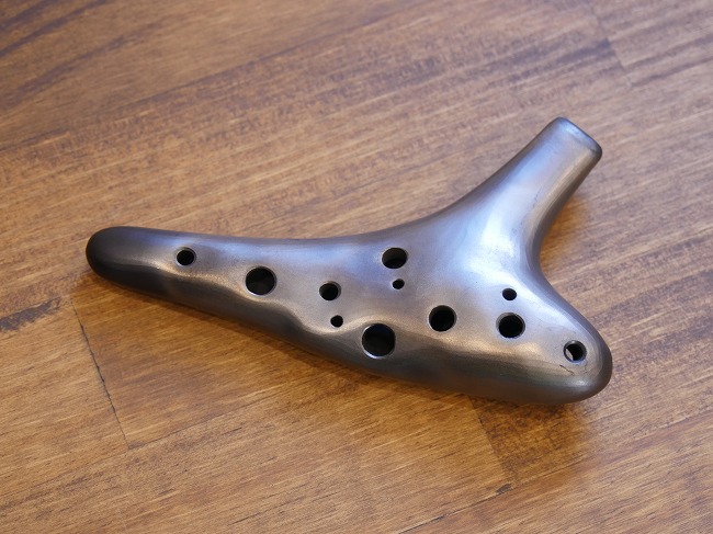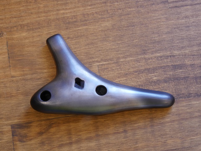 ●ヒロミチオカリナの説明 赤土を焼き上げたオカリナは、更にひと手間加えられ、大鋸屑(オガクズ)で燻し焼きしております。じっくり燻されたオカリナの外観は黒く、黒色の中にうっすら焼き目が残っております。