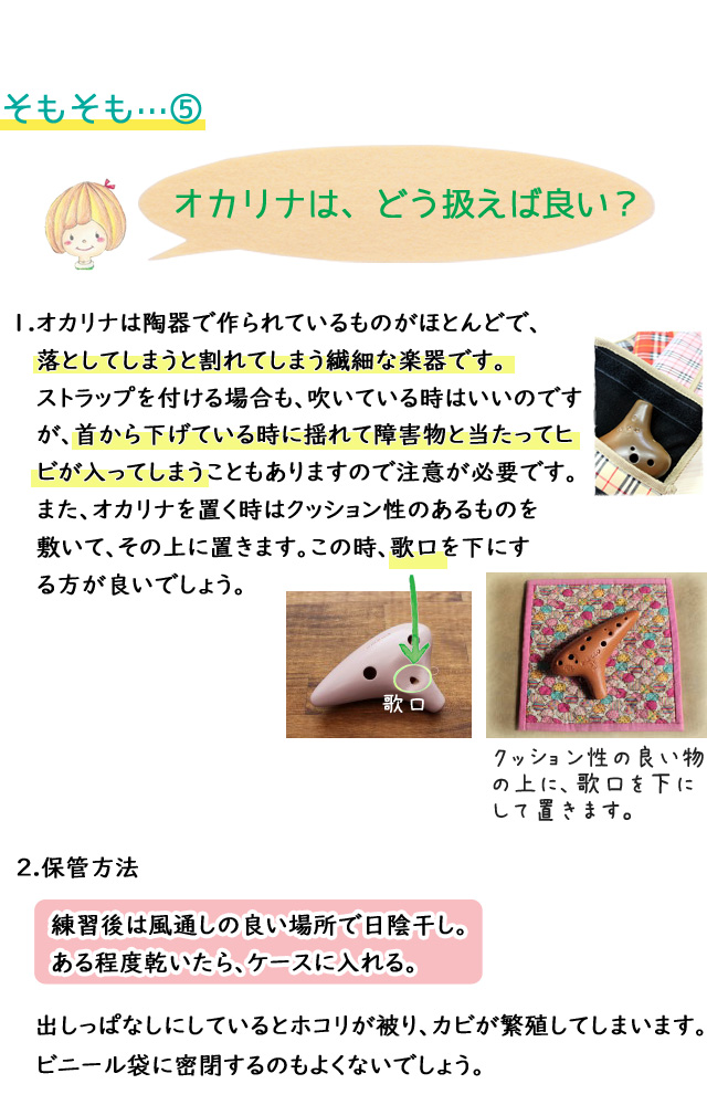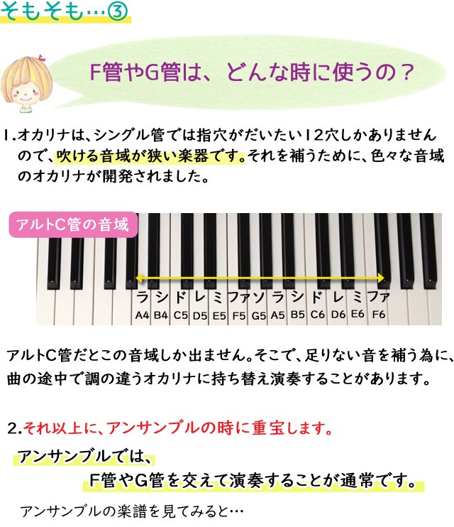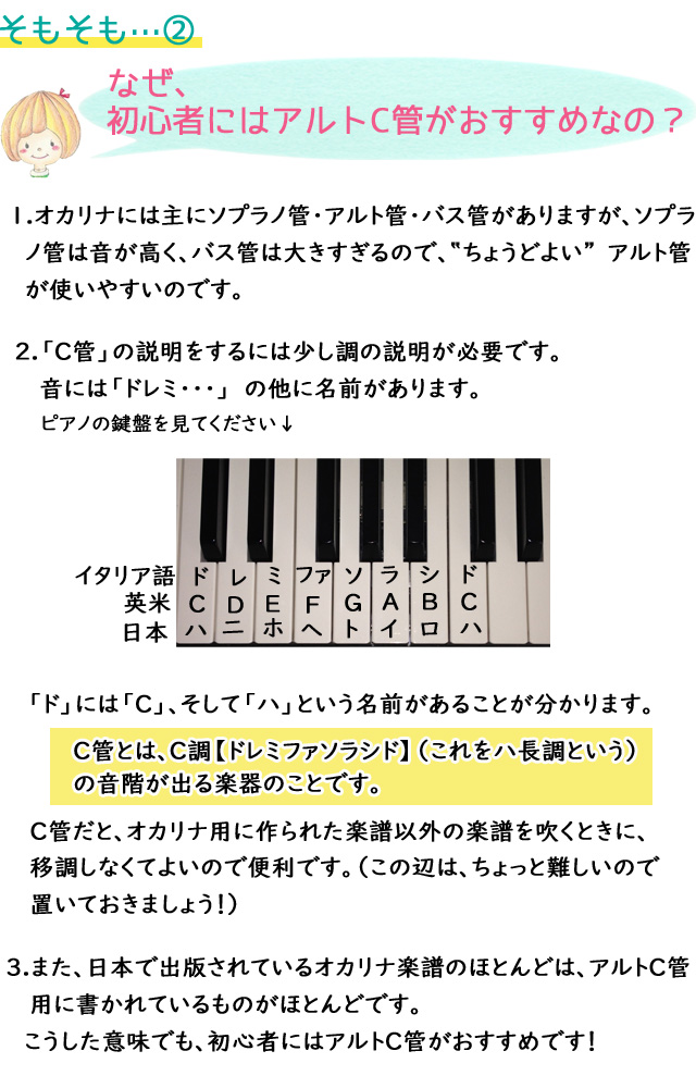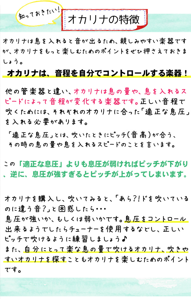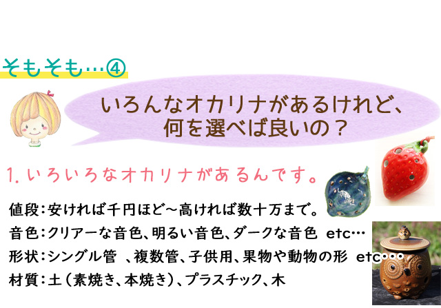 詳しくは「オカリナの種類」、「上手なオカリナの選び方」をご覧ください。