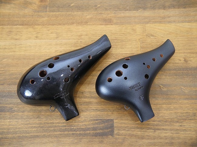 ◆オカリナ自体の形は下の写真のようにオカリナの右端をつかめるスペースが作られ、不安定になりがちな最高音のファの音もしっかり固定でき左手小指を完全に離すことが可能です。 ◆もうひとつ嬉しいのはソプラノ管からコントラバス管までの「ラインナップの豊富さ」でしょう。特に低音のバスG管やコントラバスC管などは日本のメーカーではほとんど生産しておりません。いろいろなメーカーのオカリナで演奏する場合ばらばらになりがちな『音色』や『音程』を、すべての管が揃うNight by Nobleなら合わせやすくなります。また、そのすべての管において綿密な設計がなされ、ソプラノ管、アルト管、バス管それぞれの持ち味を最大限発揮することのできるオカリナといえます。