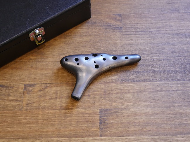 ●ヒロミチオカリナの説明 赤土を焼き上げたオカリナは、更にひと手間加えられ、大鋸屑(オガクズ)で燻し焼きしております。じっくり燻されたオカリナの外観は黒く、黒色の中にうっすら焼き目が残っております。
