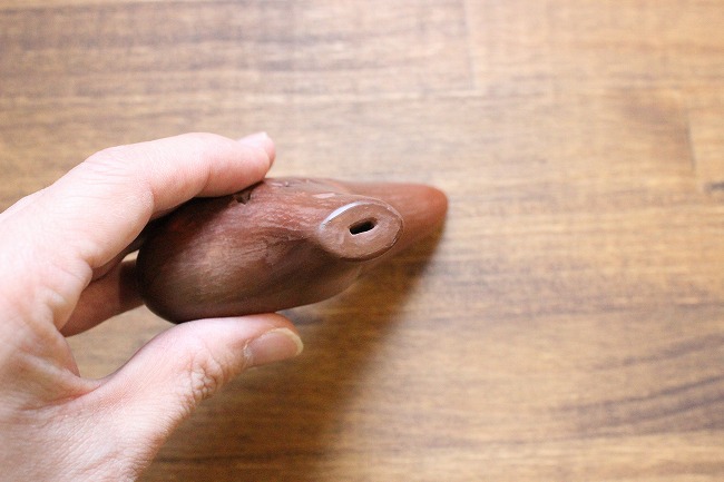 ※現在のモデルはオカリナの側面についている角印はおされておりません。
