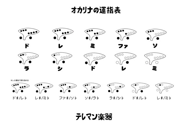 ※上記の楽譜以外のオカリナ楽譜は「低いシ・シ♭・ラと高いファ」の出てくる曲は演奏できません。