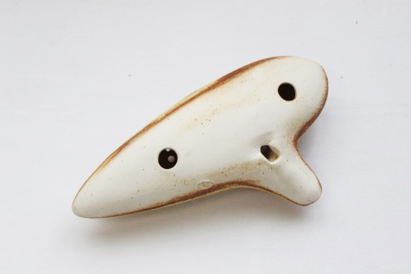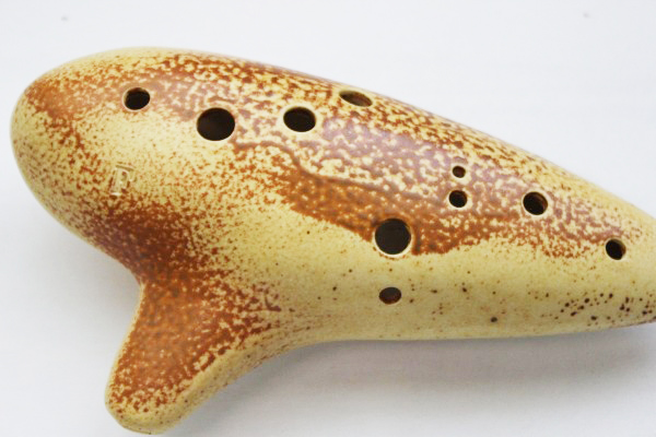 ●さくら工房オカリナ さくら工房オカリナでアンサンブルをすると、まるで人が歌っているかのような錯覚を起こします。音楽表現力のとっても高い楽器といえるでしょう。 形状はどちらかというと平べったく、人の手になじみやすい形状といえます。 やさしい息でもとっても発音が良いので「ポッ」となってくれますが、高音域はそれなりに息圧をかけないとさくら工房の良さは十分に発揮できません。 アケタやナイトほど息圧は強めではありませんが、それなりの肺活量は求められる楽器でしょう。 しっかりと息を入れることができれば、他の楽器では角度や、息の量に神経を使って出していましたが、「さくら」は高音部(ミやファ)の音も、ごく自然に角度をあまり変えずとも、のびやかに出てくれます。