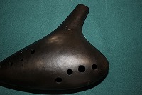 素焼きで仕上げられたオカリナを、更に煙でじっくりいぶされ半本焼き状態にします(素焼きより少しかたく焼きしまっている状態)。