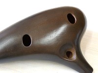 製作者の横内氏が第1にこだわられている点は「低音から高音までできるだけ綺麗な音色」で演奏できるというところで、比較的やさしめの息で高音まですっきりと音を出すことができます。 特に、この度の新しいモデルからは雑味も少なくなり、息のコントロールがまだ難しい初心者の方でも吹きやすい、人にやさしい楽器といえます。 オカリナの形状は手になじみやすい平たい形状で、吹き口に角度がついているので無理ない姿勢で演奏を楽しむことができます。 オカリナには万古土を使用し、750度〜800度前後の温度で焼成。人に無害のウレタンニスで薄く仕上げをしています。