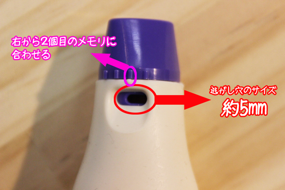 ポイント@ 器具の設定を変える ★息が弱すぎて物足りない場合こうすると改善できます。 ★吹いた時に逃がし穴から聴こえるシャーシャーという雑音が気になる方こうすると改善できます。