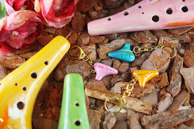 手のひらにちょこんとのるサイズ!オカリナキーホルダー 【颯オカリナSモデル】