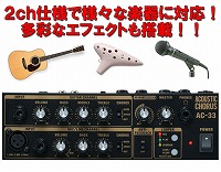 2ch仕様なので、オカリナの他にギターを接続したり、カホンなどの打楽器をラインで繋ぐことも出来ちゃいます♪ 各チャンネルに独立装備されたステレオ・コーラスや、音の臨場感を簡単に調整できるリバーブ/アンビエンスなど、高品位なステレオ・エフェクトを搭載しています! |