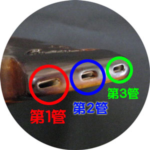吹き方は第1管から第2管に切り替えるのと同じように真ん中の第2管から右の第3管に切り替えます♪