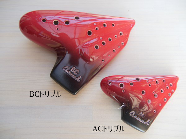 ---------------以下はトリプルオカリナについての解説です------------------ トリプルオカリナとは3つのオカリナを1つに合体させ、通常1オクターブ半しかでない音域を3つの吹き口を使用することにより約3オクターブの音域まで奏でることが出来るオカリナです。 |