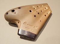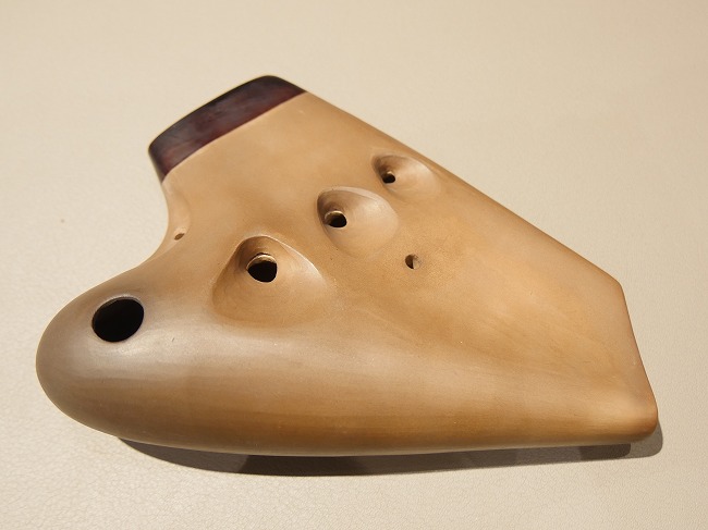 まず、トリプルオカリナとは3つのオカリナを1つに合体させ、通常1オクターブ半しかでない音域を3つの吹き口を使用することにより約3オクターブの音域まで奏でることが出来るオカリナです。 |