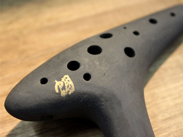 ひぐらしオカリナの製作者は『ハンドメイドオカリナ』の著者でも知られる鈴木のぼる氏。千葉県松戸市に工房を構え、シングル管からトリプル管まで様々なオカリナを制作されています。 当店ではそんなひぐらしオカリナのたくさんのラインナップの中から、私たちが気に入ったシングル管をご紹介させていただきます。 ◆数多くのオカリナがある中でひぐらしオカリナはもっとも『和』な印象を感じることのできるオカリナです。墨で焼成された表情の土に黄金の「蜩(ひぐらし)」の文字が入り存在感があります。 音色はとても優しく響豊かで、高音も非常にのびやか。素晴らしいオカリナです。やはり関東のオカリナらしく高音部はどちらかというと優しく吹き込み優しい音色を楽しむことができます(高音部は体に近づけるとスッと音が抜けます)。手作りの感じが存分に感じられるオカリナ。ぜひご利用ください。