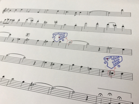オカリナを練習していると、押さえる指穴がわからなかったり