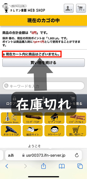 | その他 | 買い物カゴに入れていただいた商品でもご注文手続き途中で画面に「※現在カート内に商品はございません。」が表示され、手続きが先に進めない場合は申し訳ございません。ご注文手続きの途中で他のお客様が購入され売り切れとなっております。他の商品をご検討ください。(この件は下記「在庫状況について」にも記載しております。) 当店のシステム上の問題が考えられるため一度テレマン楽器までご相談ください。 |